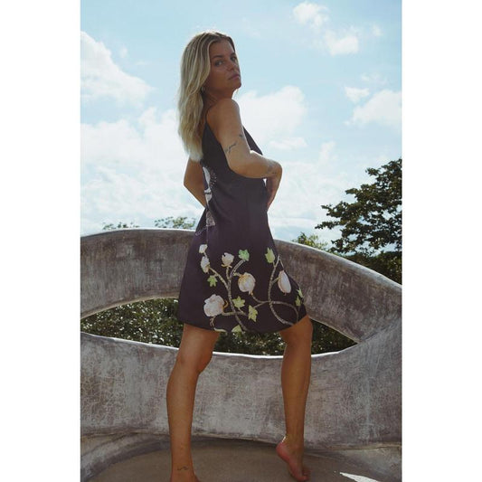 Vela Silk Slip Dress in Black Jungle Butterfly