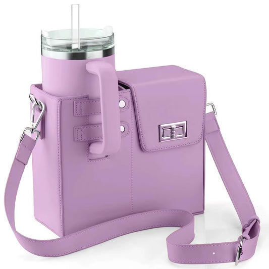 Outdoor Portable Crossbody Water Cup Storage Bag Water Bottle Carrier with Adjustable Strap PU Leather Cup Bag Storage Pocket