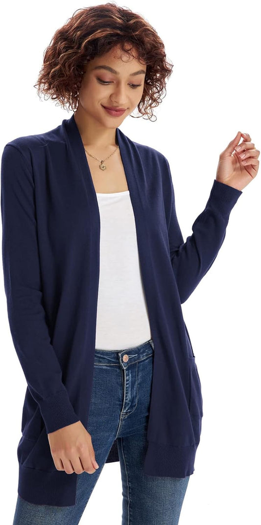 Women'S Casual Open Front Cardigan Long Knitted Sweaters Shrug with Pockets