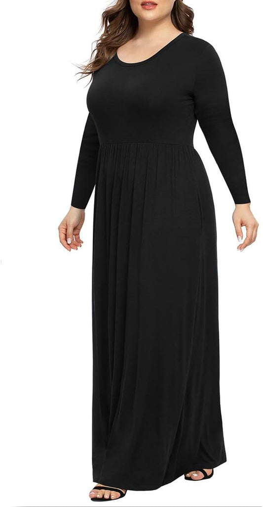 Women'S Long Sleeve plus Size Dress Casual Maxi Dresses XL-6XL Soft with Pockets