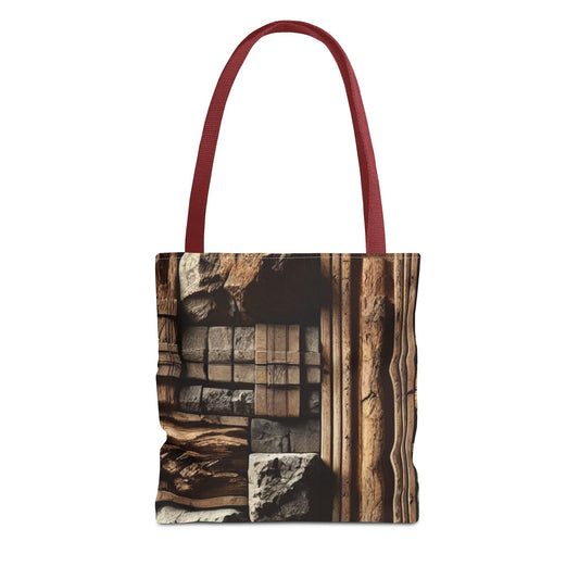Stone Carving Pattern Tote Bag — Rustic Architectural Print All-Over Tote