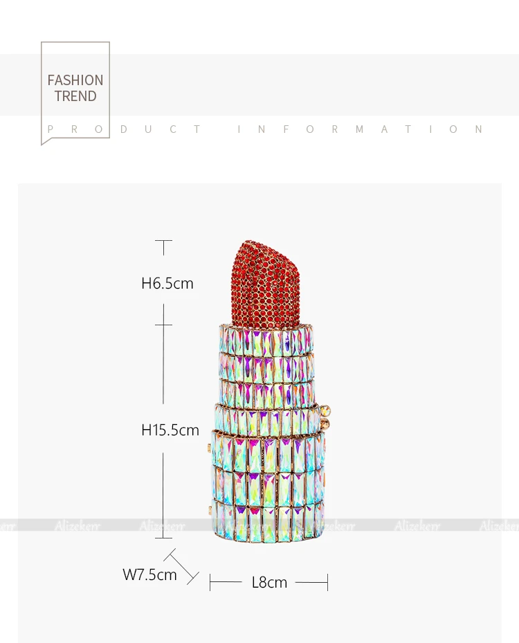 Lipstick Evening Crystal Clutch Bag Women 2021 Luxury Boutique Metal Rhinestone Wedding Purses and Handbags Designer Top Quality