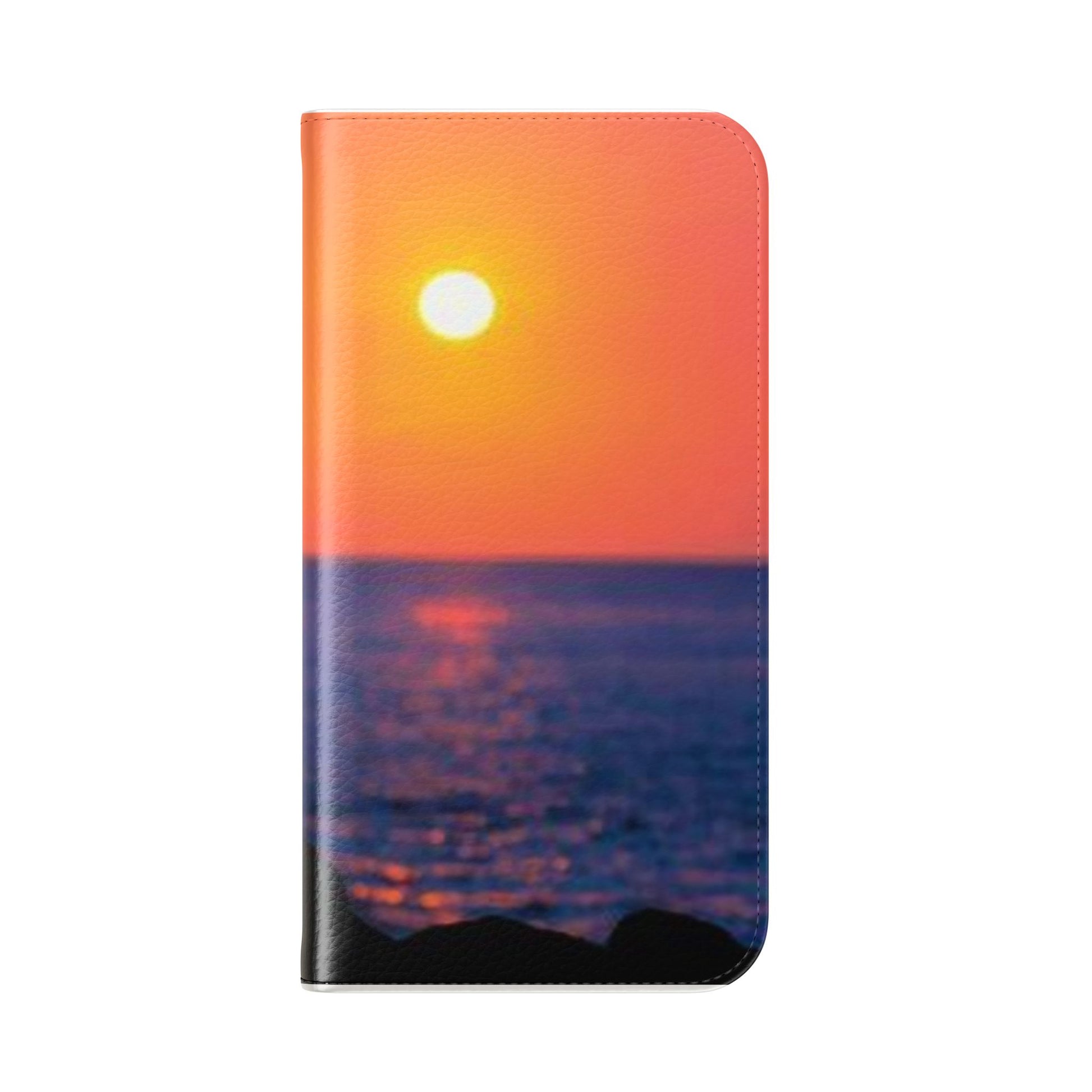 Carry a quiet sunrise with you. This flip phone case wraps a durable polycarbonate shell and vegan faux leather cover around your device, while a soft silhouette of a yoga pose against a glowing orange sea invites a moment of calm every time you open it. Stitched card pockets keep essentials secure, and a flat elastic fastening plus an included care slip make daily use simple. For S24/S25 users, a D-ring lets you add a strap for hands-free carrying. The built-in stand and clear port openings mean you can follow a morning flow or watch videos without removing the case. Light, mindful, and made in South Korea — it’s for people who value both protection and peaceful design.